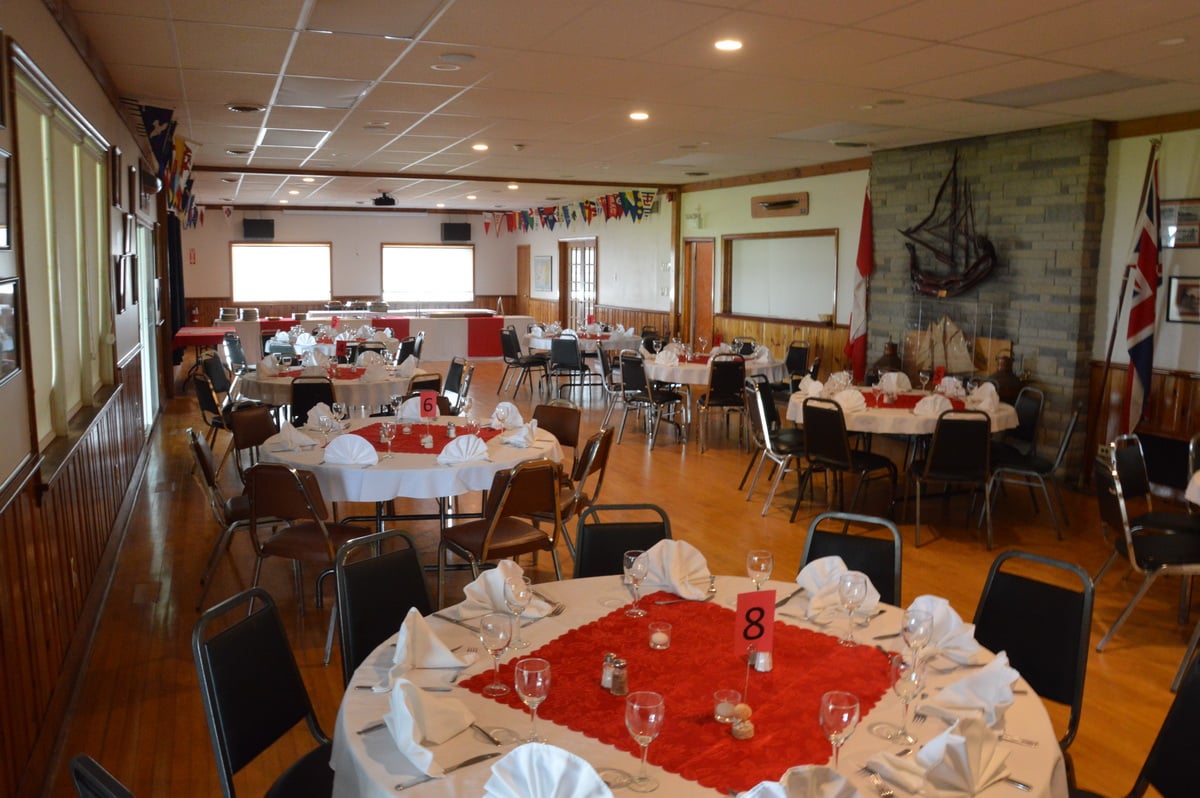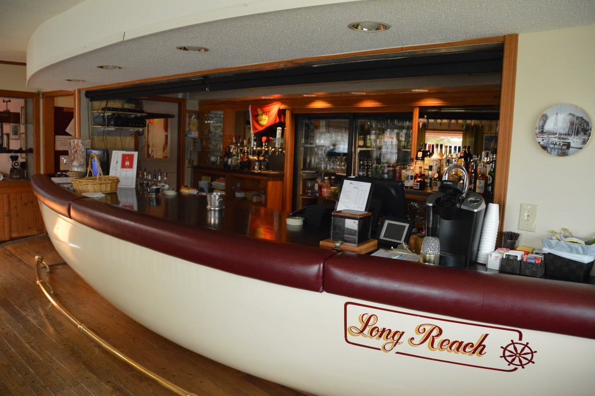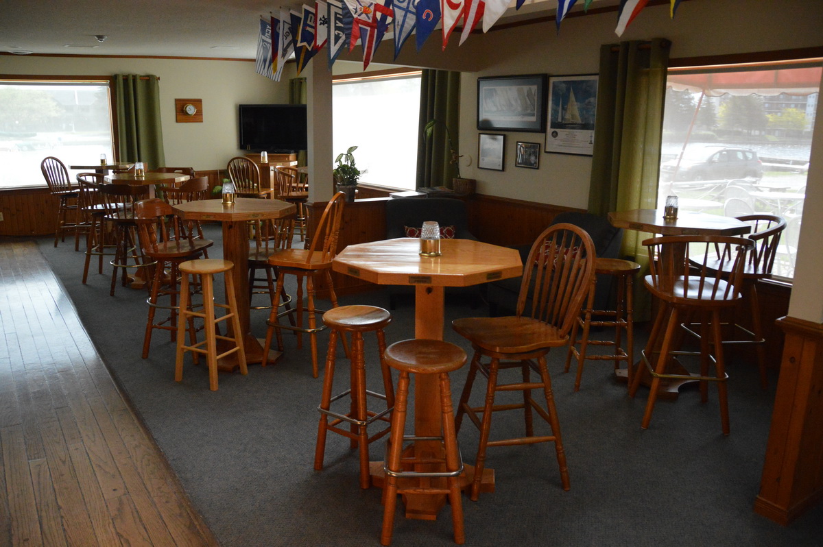 Our lounge bar, The Long Reach Bar, is made from the hull of an Alberg 22 sailboat built by Nye Yachts of Belleville. It is a real conversation piece that was specially commissioned for our club. The bar carries a varied selection of spirits, liquors, wines, and beers, including craft beers, as well as a selection of non-alcoholic beverages.